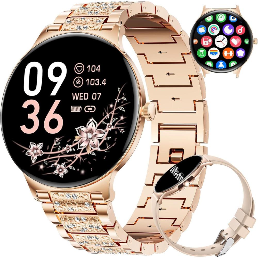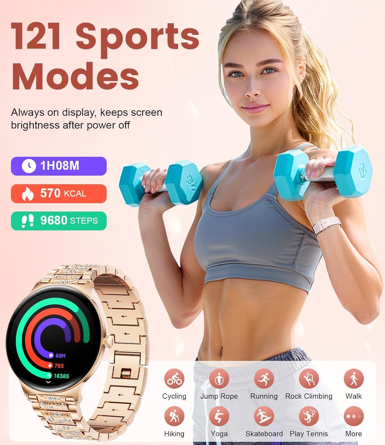 【Bluetooth Calling & Smart Notifications】: Enjoy seamless connectivity wherever you go with this smart watches women. Answer calls directly from your wrist or make calls – ensuring you never miss an important moment, even when your hands are full. Stay up-to-date with real-time notifications from your favorite apps, including social media, text messages, and reminders. Whether at work, exercising, or on the go, this watch keeps you connected, informed, and always in control – the perfect blend of technology and comfort.