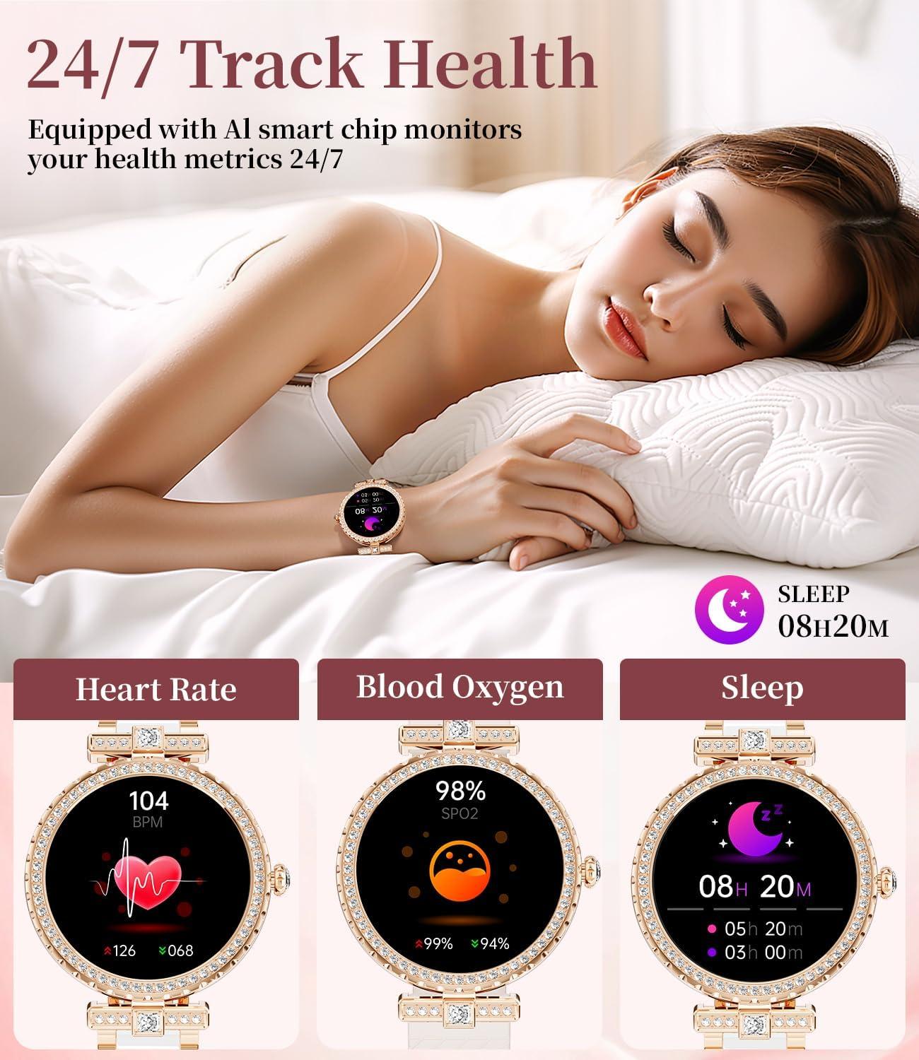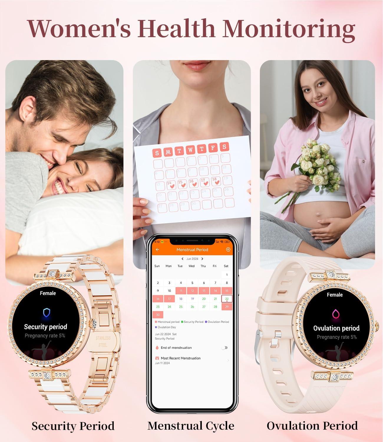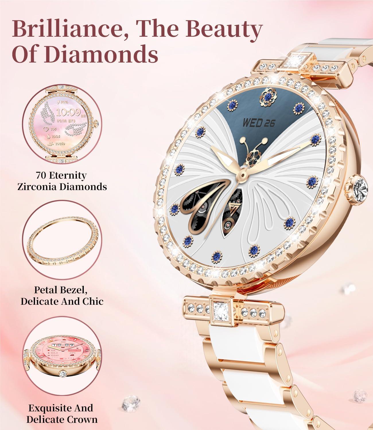 Both stylish & smart: Integrating AI voice assistant, weather forecast, stopwatch, timer, calculator, calendar, mobile search and women's health functions, it is a perfect combination of fashionable elegance and smart technology.
