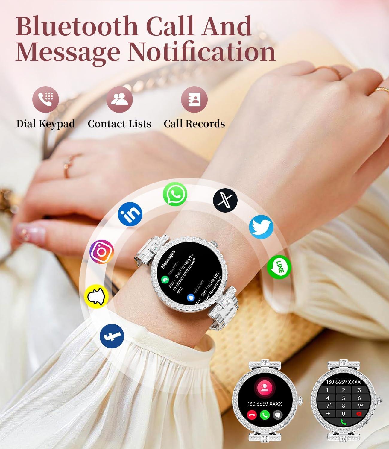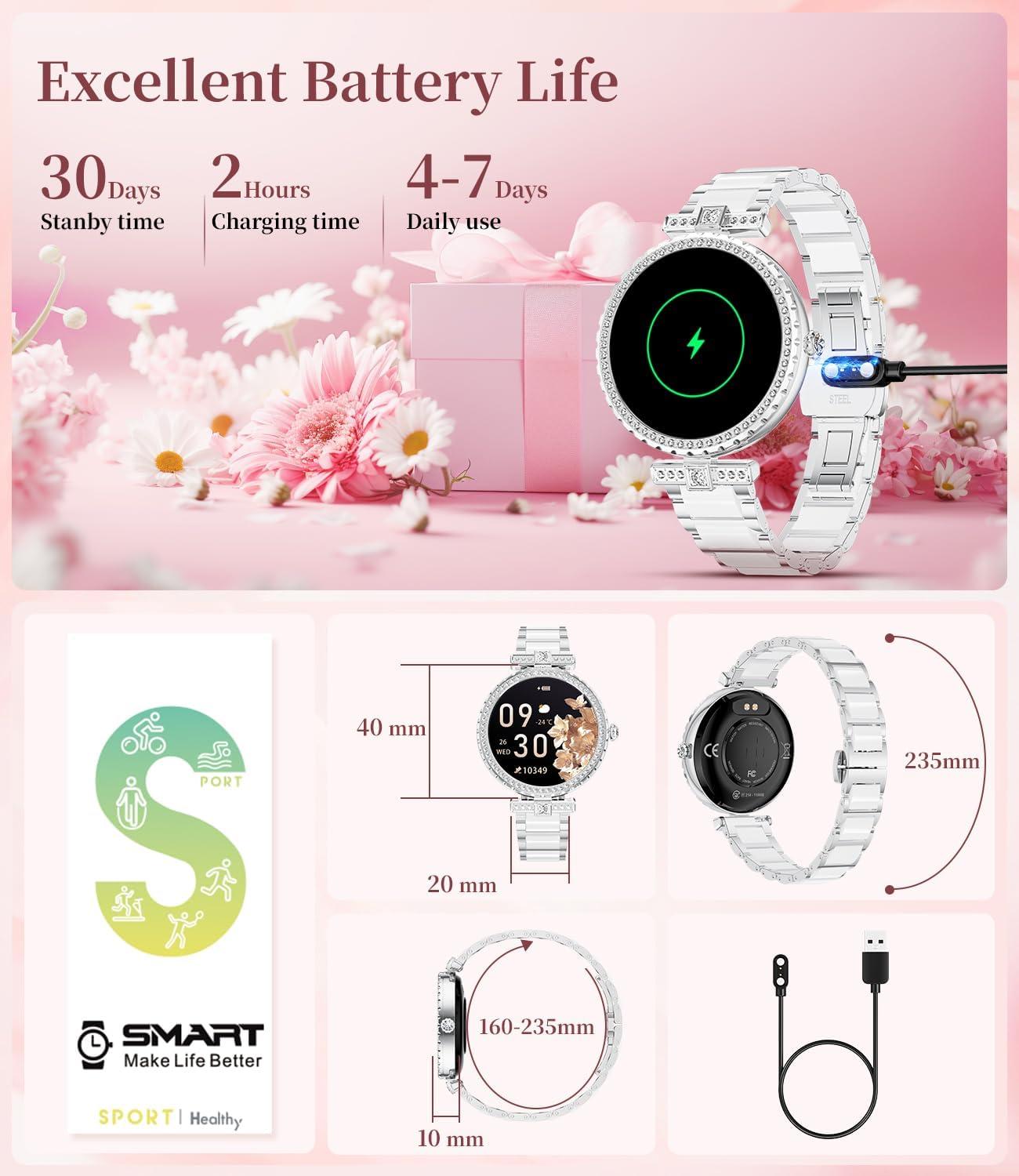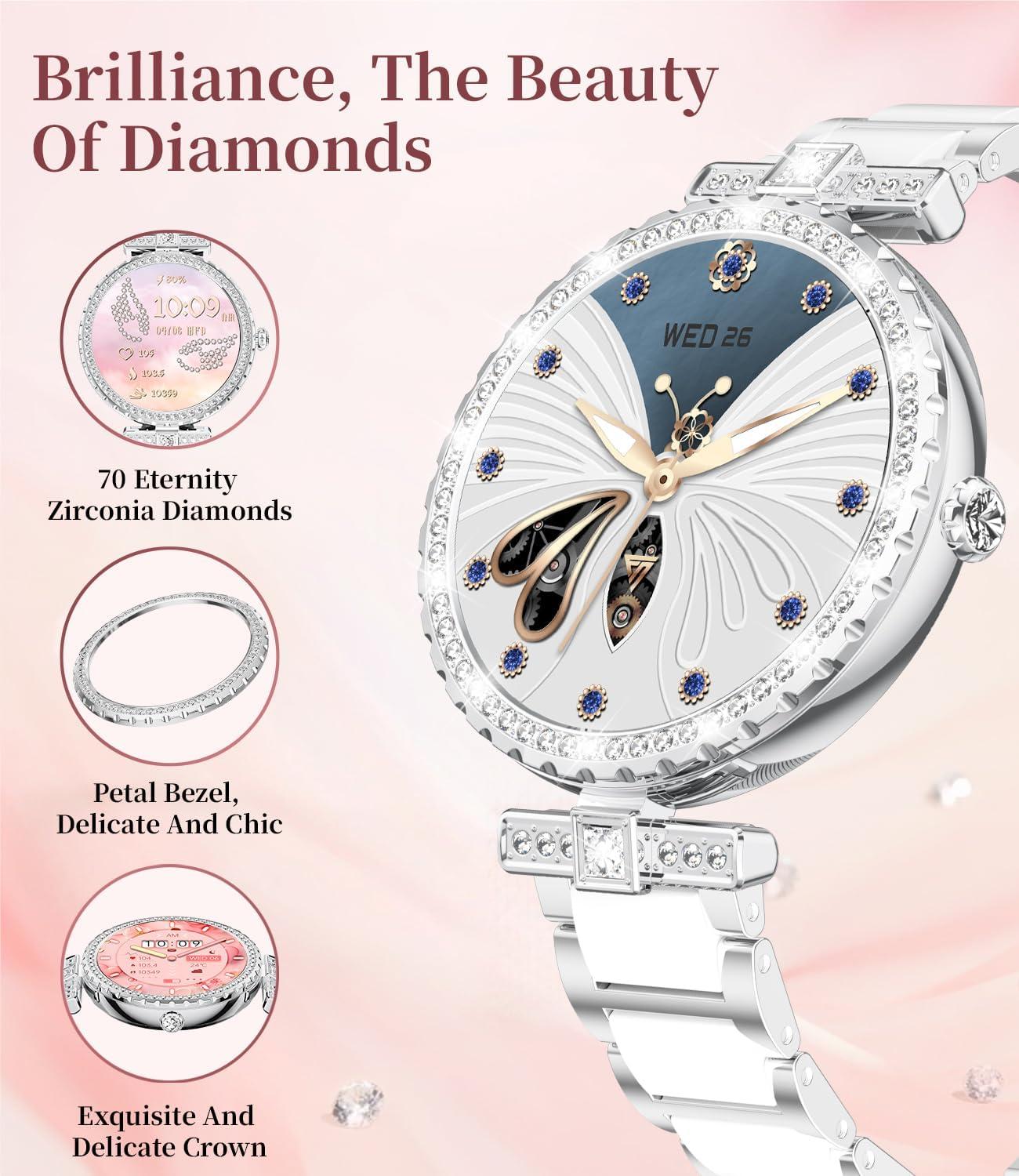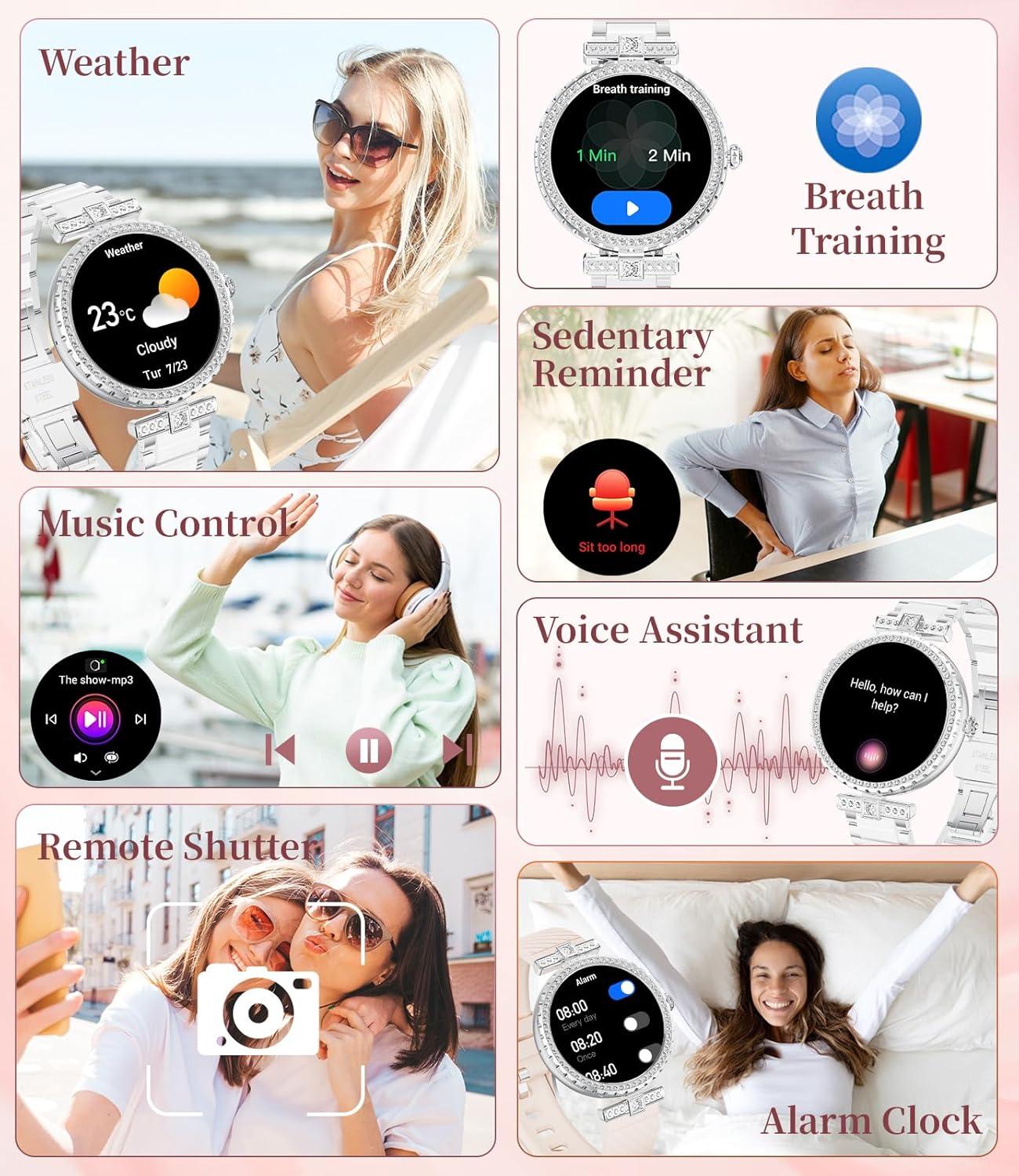 Both stylish & smart: Integrating AI voice assistant, weather forecast, stopwatch, timer, calculator, calendar, mobile search and women's health functions, it is a perfect combination of fashionable elegance and smart technology.