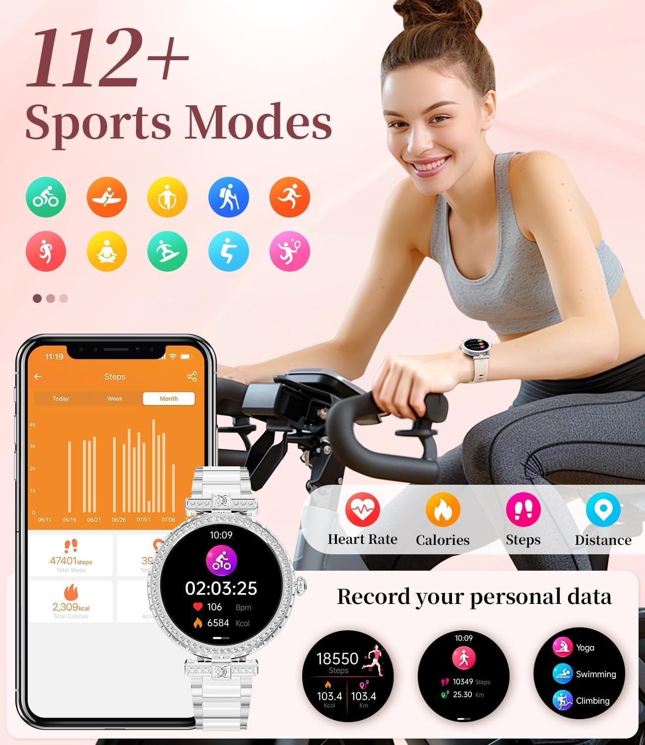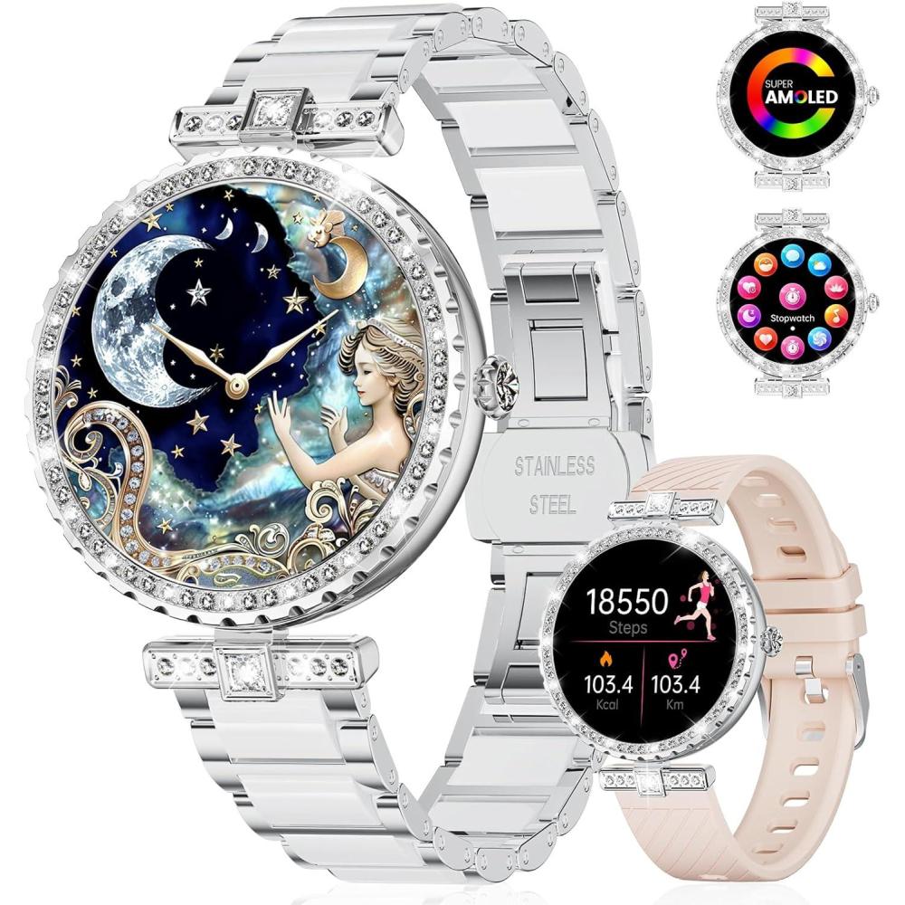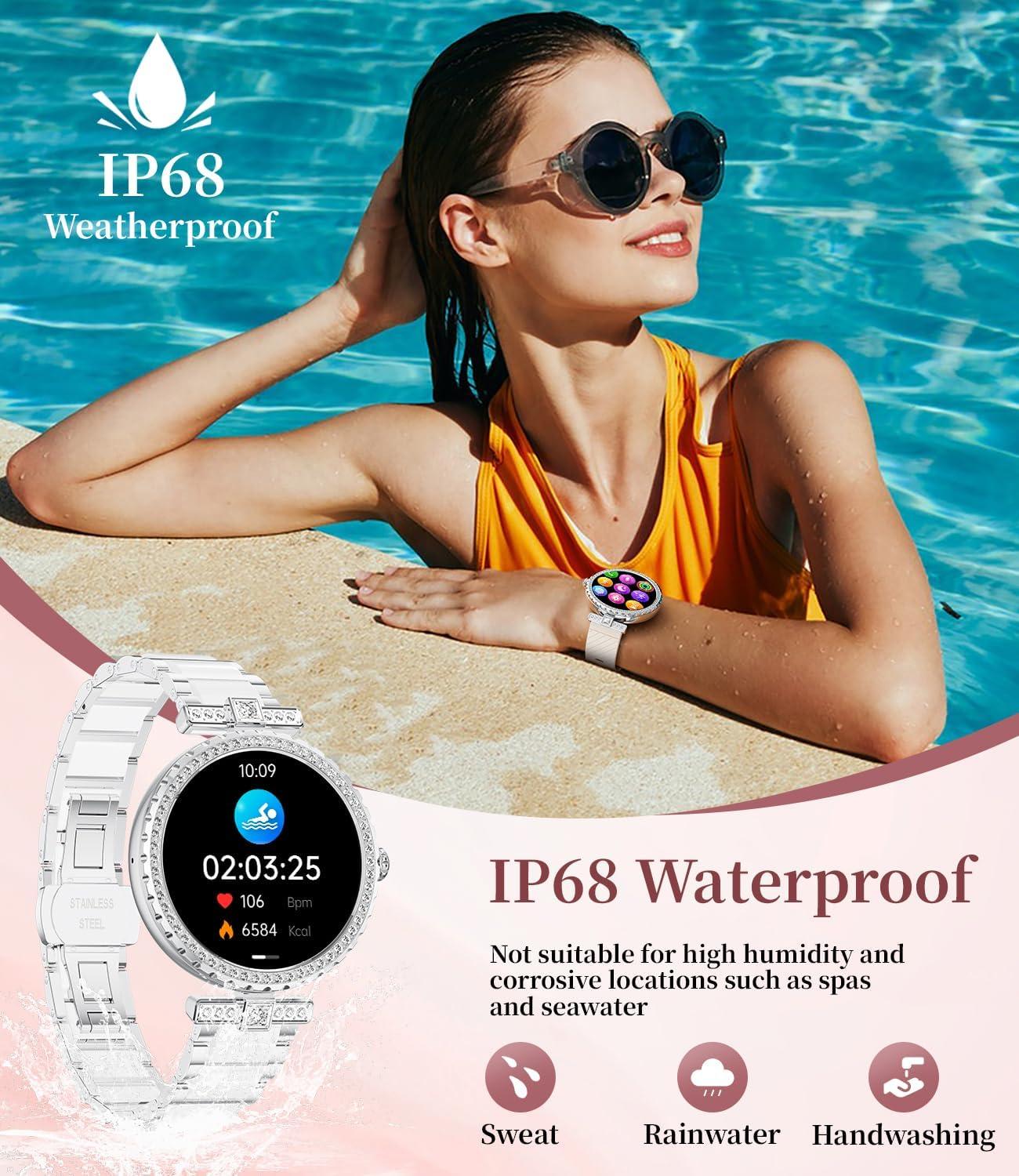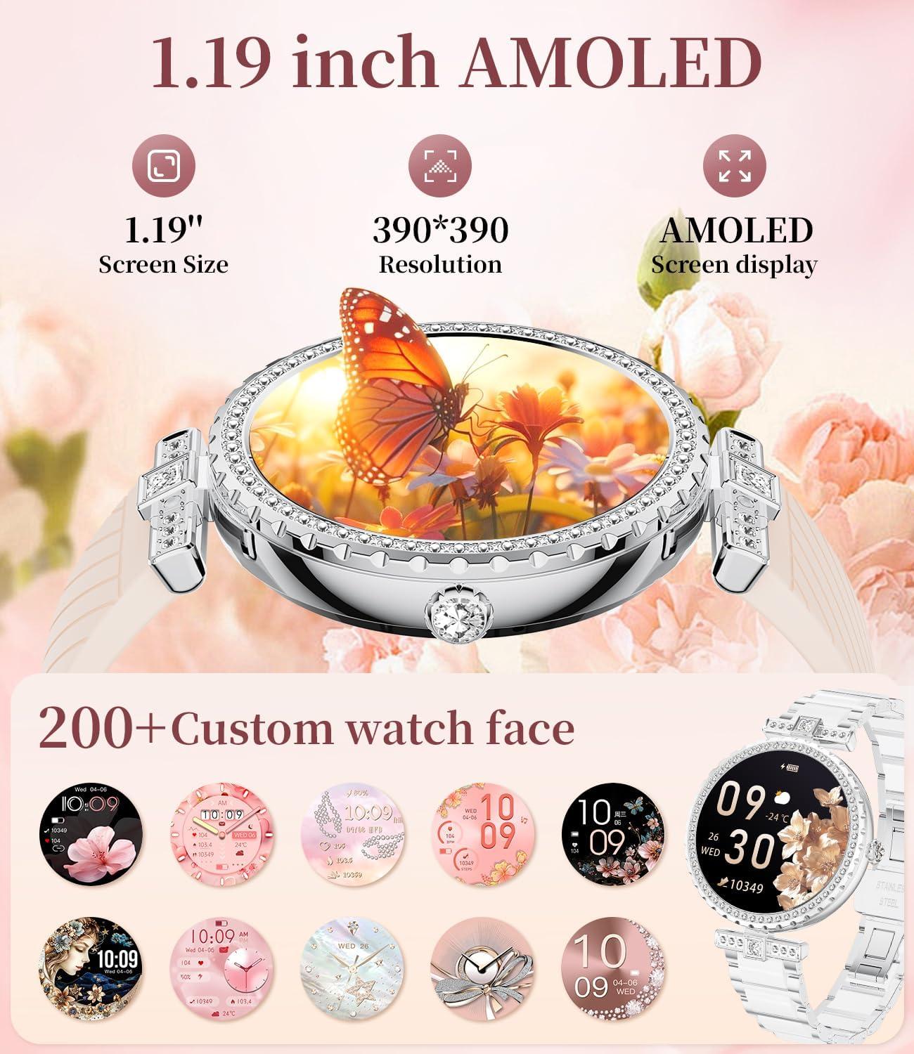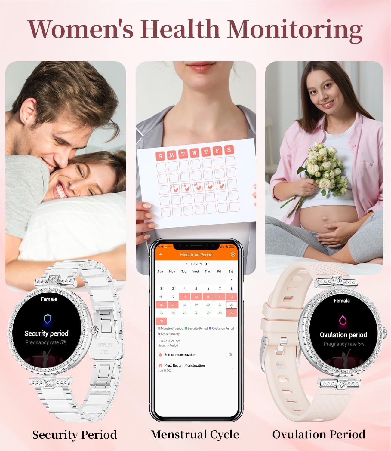 Both stylish & smart: Integrating AI voice assistant, weather forecast, stopwatch, timer, calculator, calendar, mobile search and women's health functions, it is a perfect combination of fashionable elegance and smart technology.